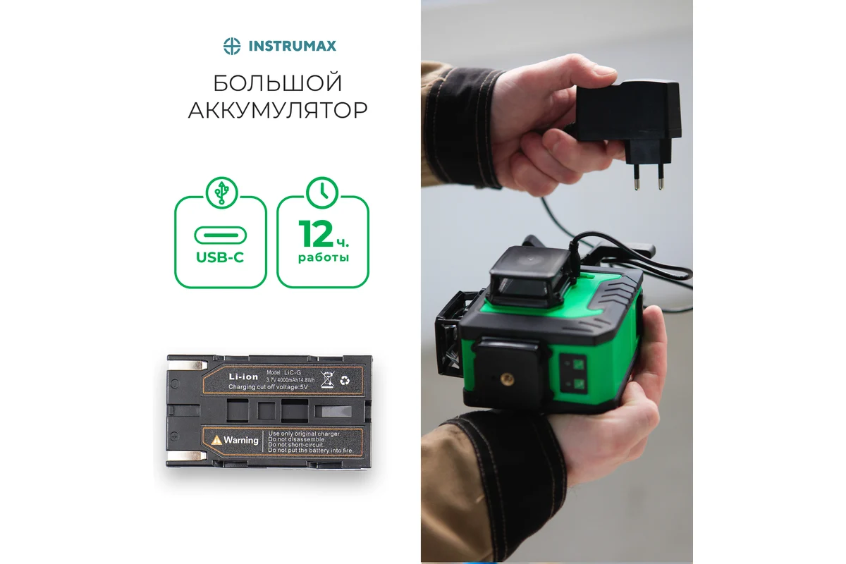 Аккумулятор ёмкостью 4000mAhпозволит работать без перебоев на смену питания. Заряд аккумулятора может происходить как отдельно, так и при работе прибора в режиме “от сети”.