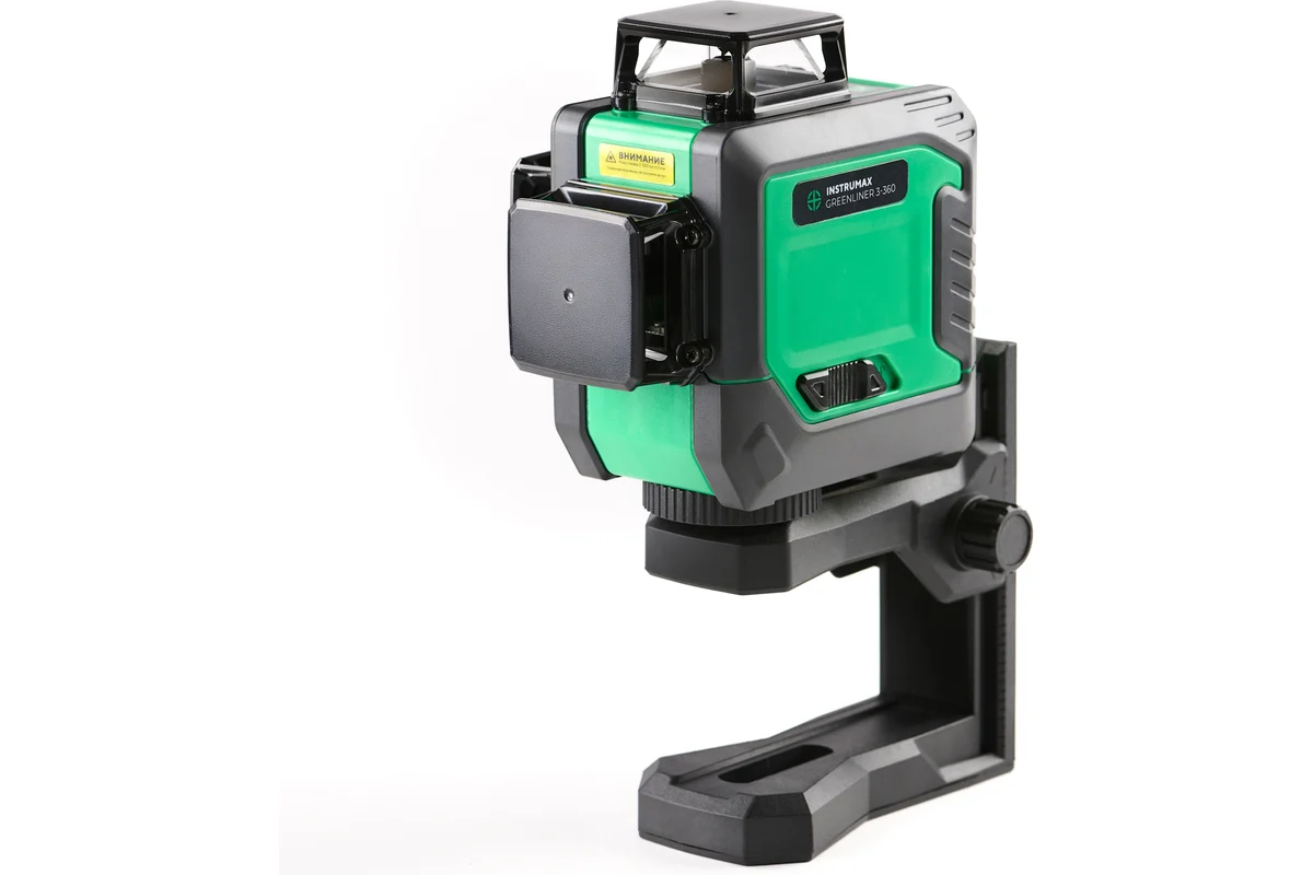 Проекция 3х взаимно перпендикулярных ярких зеленых линии обеспечивают быструю и удобную разметку помещения. Вне зависимости от сложности задачи, работа под потолком или впритирку к стенам данная модель подойдёт лучше прочих.