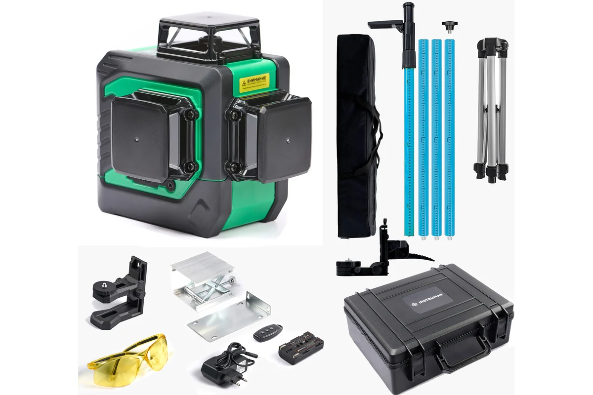 Комплект INSTRUMAX лазерный уровень, GL 3-360 Master SET+Штатив-штанга, элевационный LP-300 в комплекте с треногой, 3м