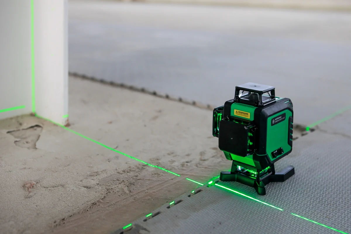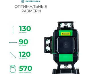 Проекция 4х взаимно перпендикулярных ярких зеленых линии обеспечивают быструю и удобную разметку помещения. Вне зависимости от сложности задачи, работа под потолком, впритирку к стенам или минимальное отклонение от нулевой точки пола данная модель подойдёт лучше прочих.