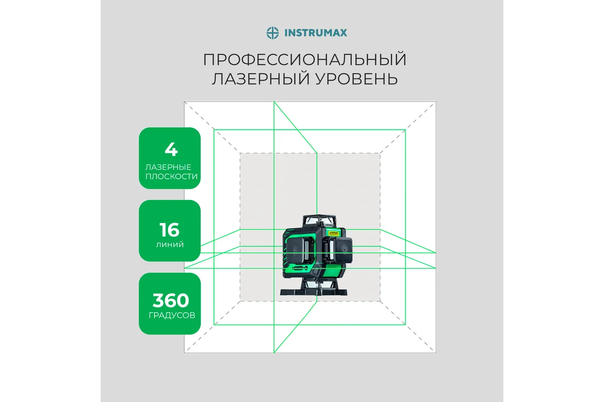 Комплект INSTRUMAX лазерный уровень, GL 4-360 Master SET+Штатив-штанга элевационный, LP-300 в комплекте с треногой, 3м