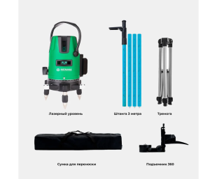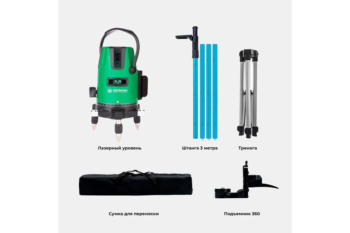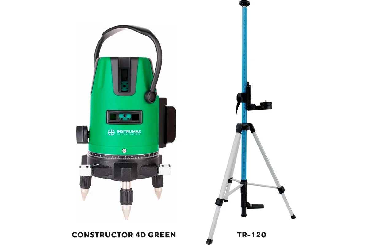 Комплект Лазерный уровень INSTRUMAX Constructor 4D GREEN+штанга элевационный INSTRUMAX LP-300 в комплекте с треногой (3 м)