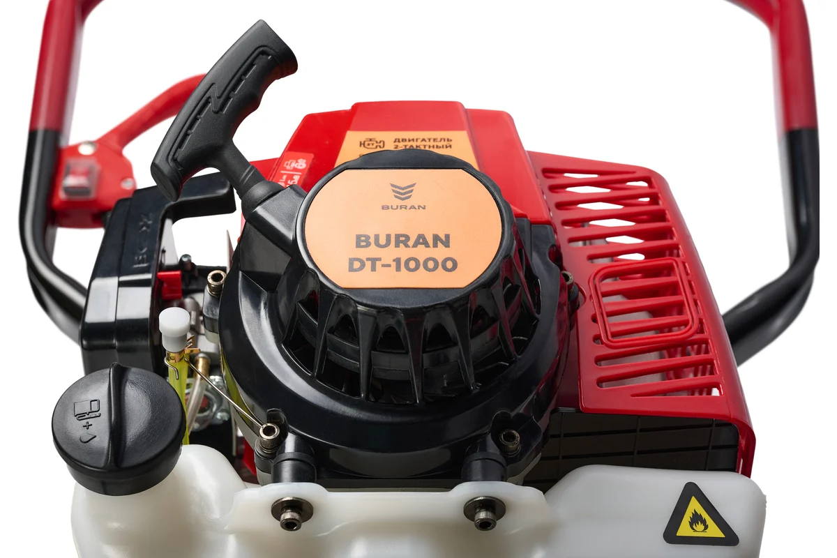 Профессиональный комплект мотобура BURAN DT-1000 со шнеком DRILL 200х800 от производителя профессиональной бензотехники BURAN обладает двухтактным двигателем с увеличенным запасом срока службы. Широкие рамные ручки предназначены для удобной работы двух операторов и обеспечивают увеличенный момент силы. Важным преимуществом является мощность бура 3.39 л.с. (2500 Вт) при объёме двигателя 71 см3, это позволяет эффективно использовать шнек диаметром 250мм. DT-1000 становится незаменимым помощником на приусадебном участке и строительной площадке. Перед использованием техники рекомендуется ознакомится с инструкцией для подготовки и безопасного использования.