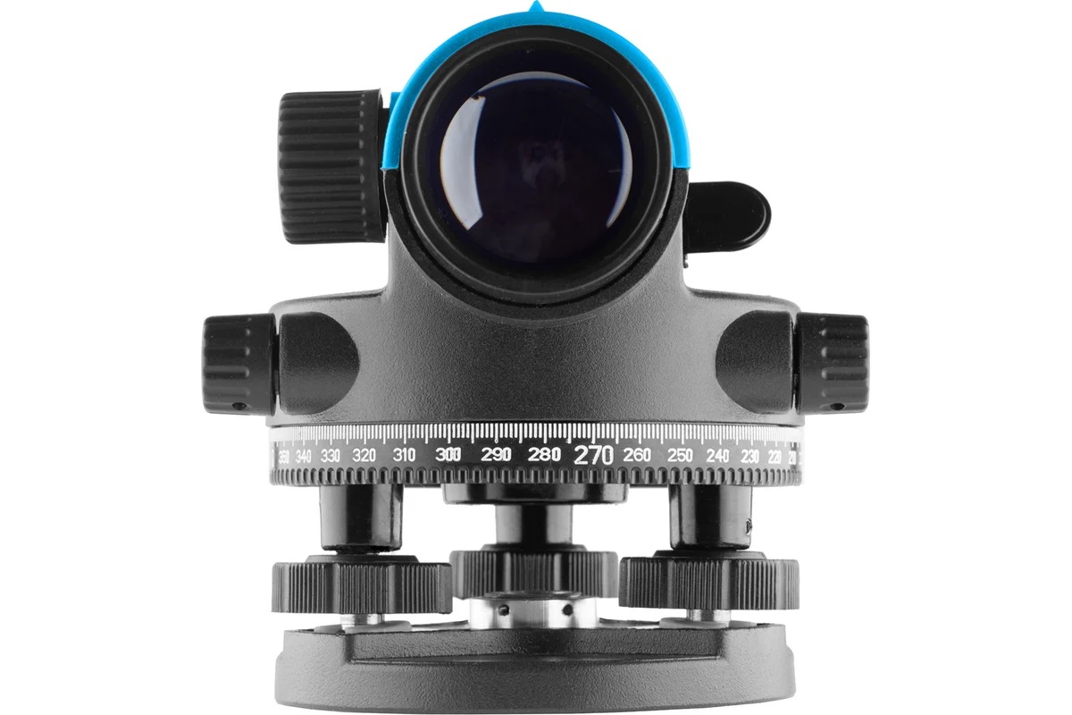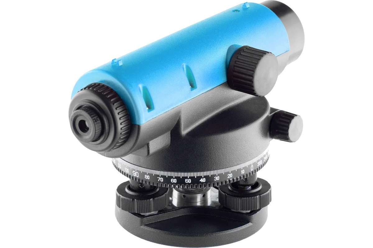 Нивелир имеет горизонтальный лимб в 360° для угловых измерений, а дальномерные сетки нитей могут быть использованы для измерения расстояний.