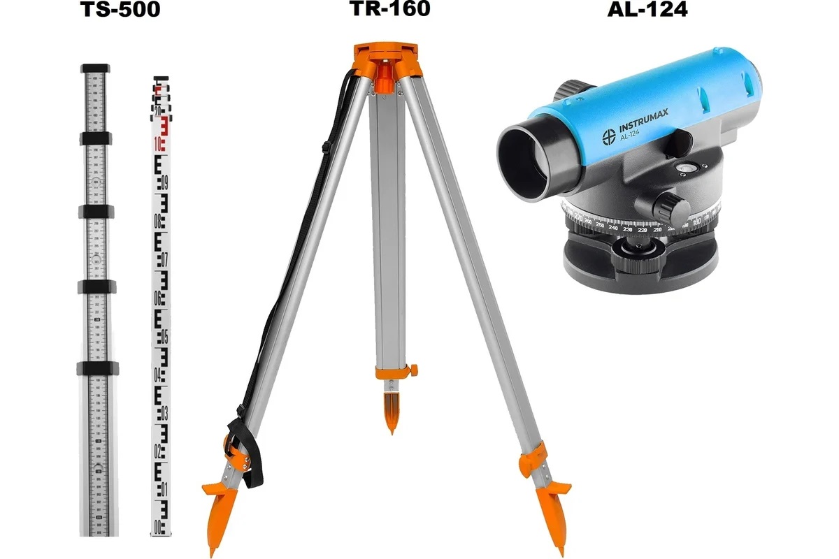КОМПЛЕКТ Нивелир оптический INSTRUMAX AL-124 + Рейка нивелирная телескопическая INSTRUMAX TS-500 + Штатив алюминиевый геодезический INSTRUMAX TR-160