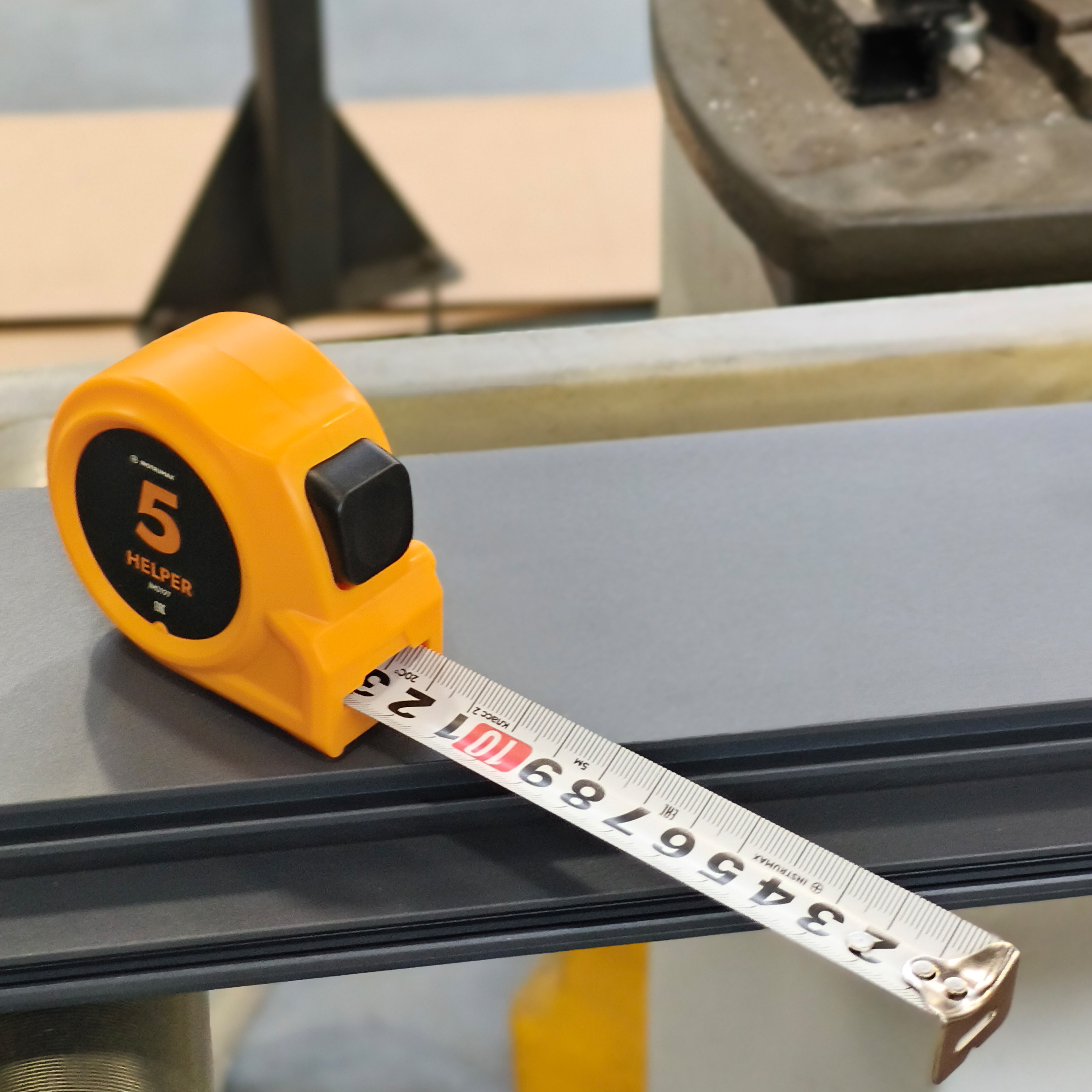 Благодаря среднеразмерной конструкции и оптимальному весу, рулетка HELPER 5 отлично лежит в руке. Корпус обеспечивает удобный хват и защищает при падении от ударов. Рулетки проходят прочностные испытания на падение с высоты 1,5 м, на бетон.