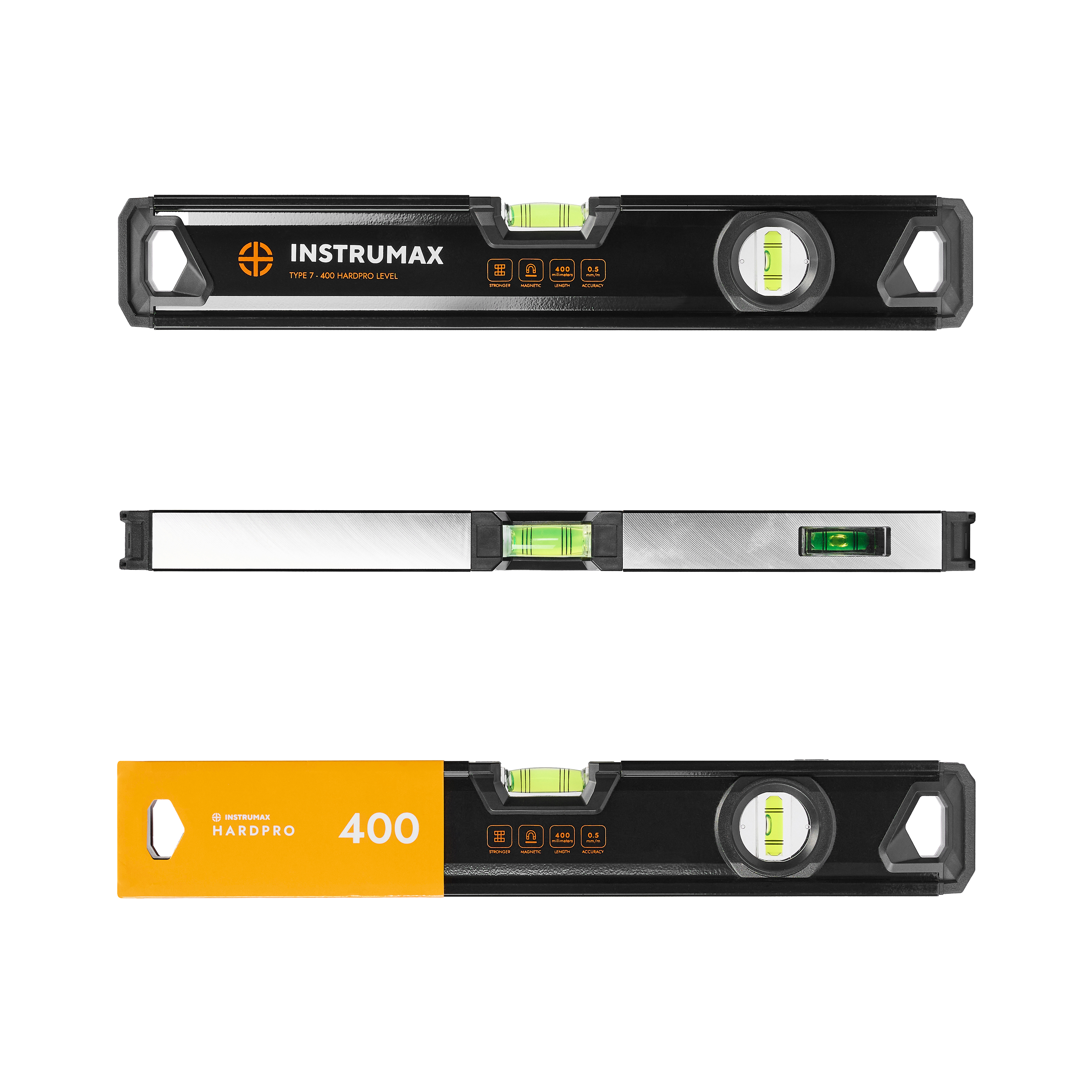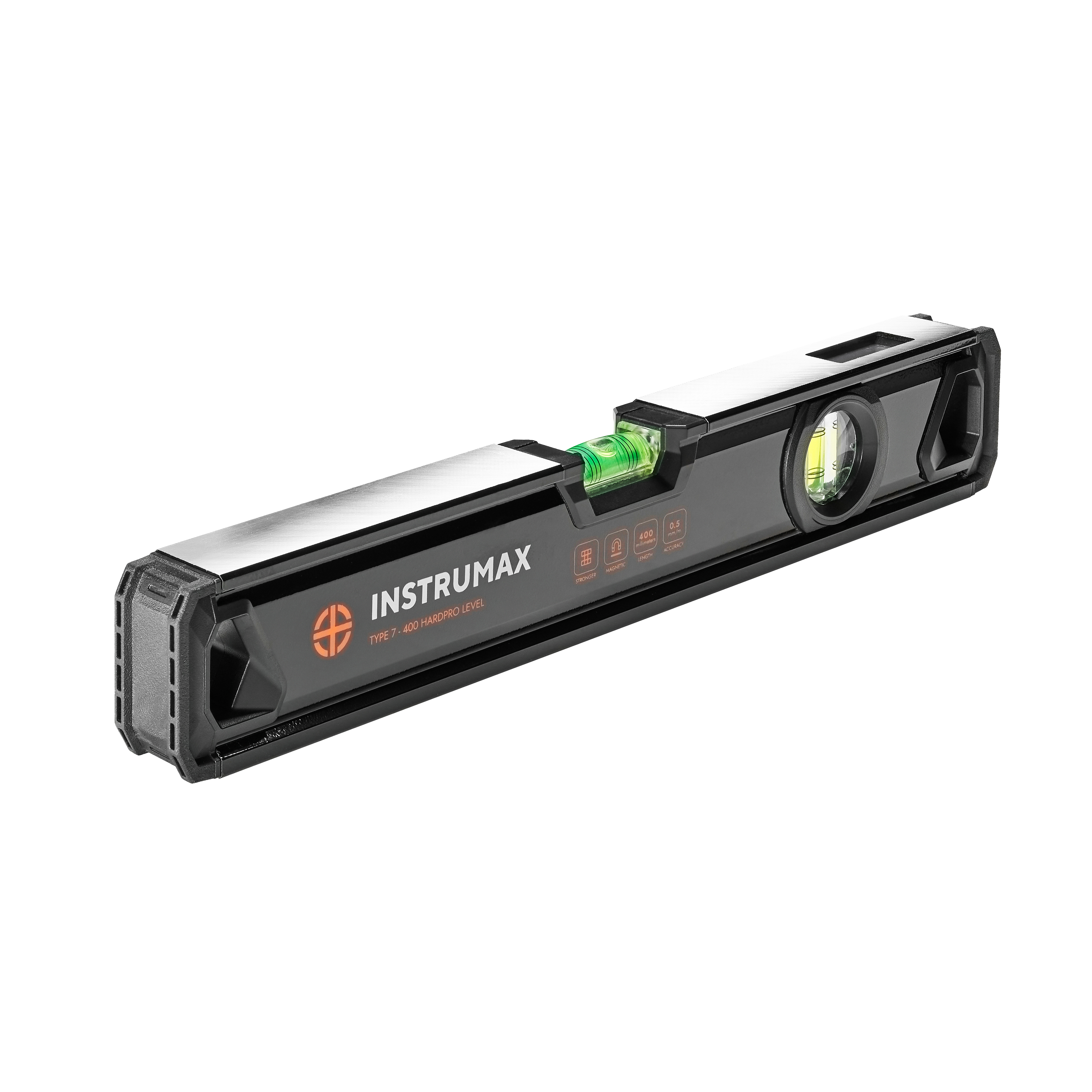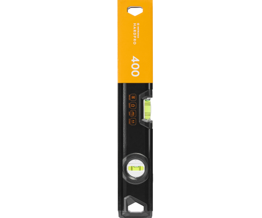 Строительный уровень HARDPRO 400 разработан для интенсивной эксплуатации на стройплощадке и рассчитан на повышенные нагрузки. В его основе — утолщённый алюминиевый профиль шириной 29мм, который обеспечивает высокую прочность и устойчивость к деформациям даже в сложных условиях работы.