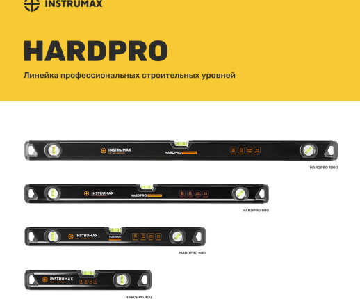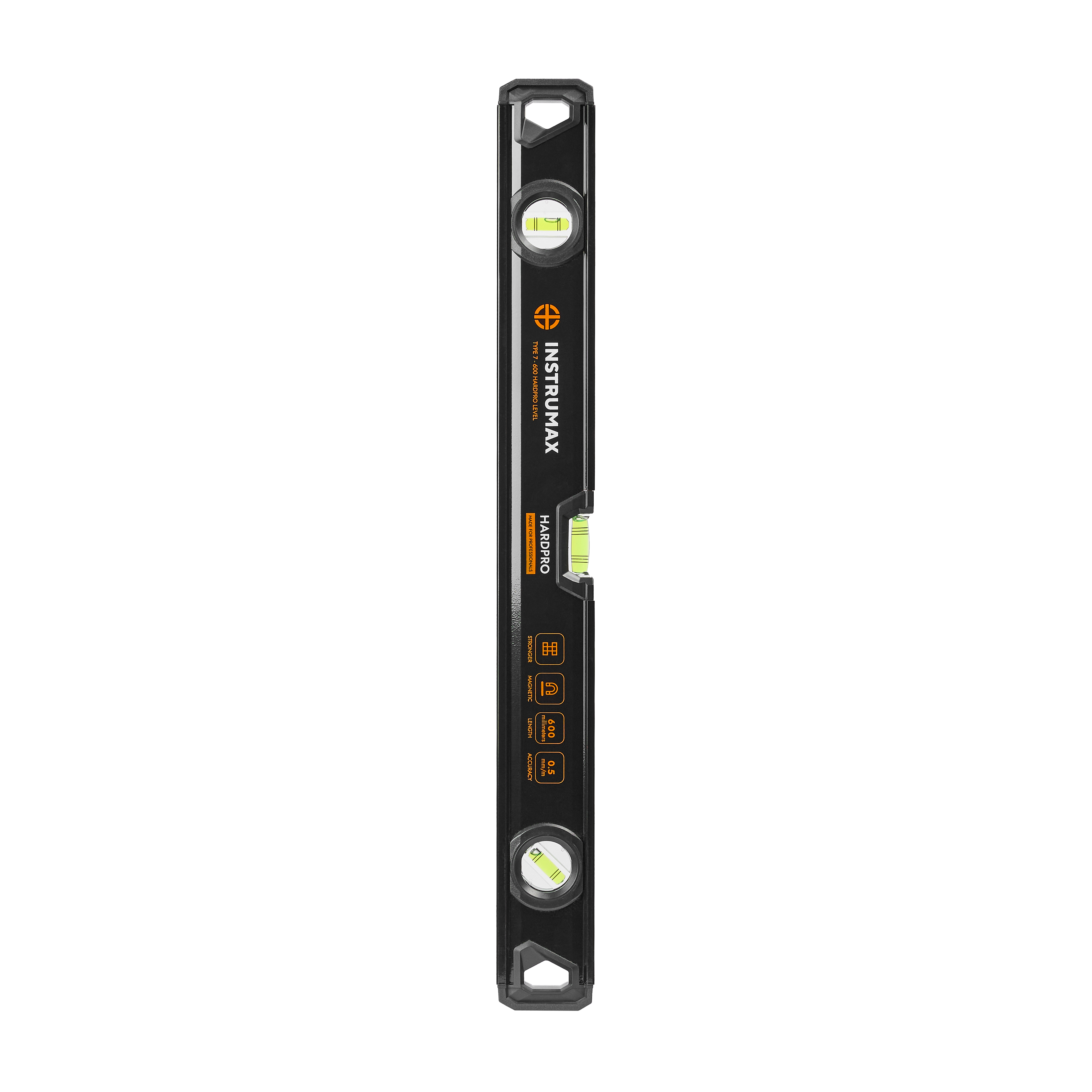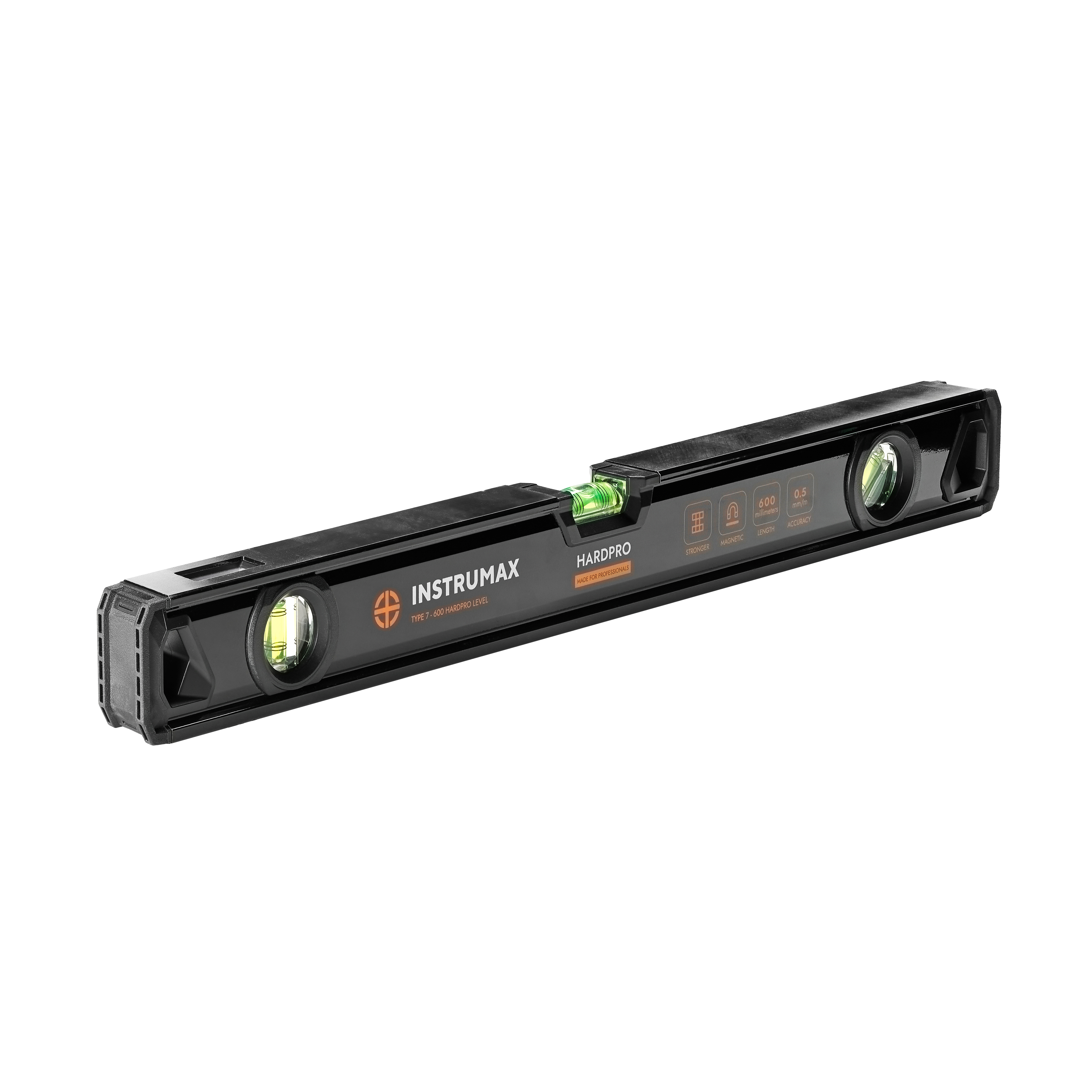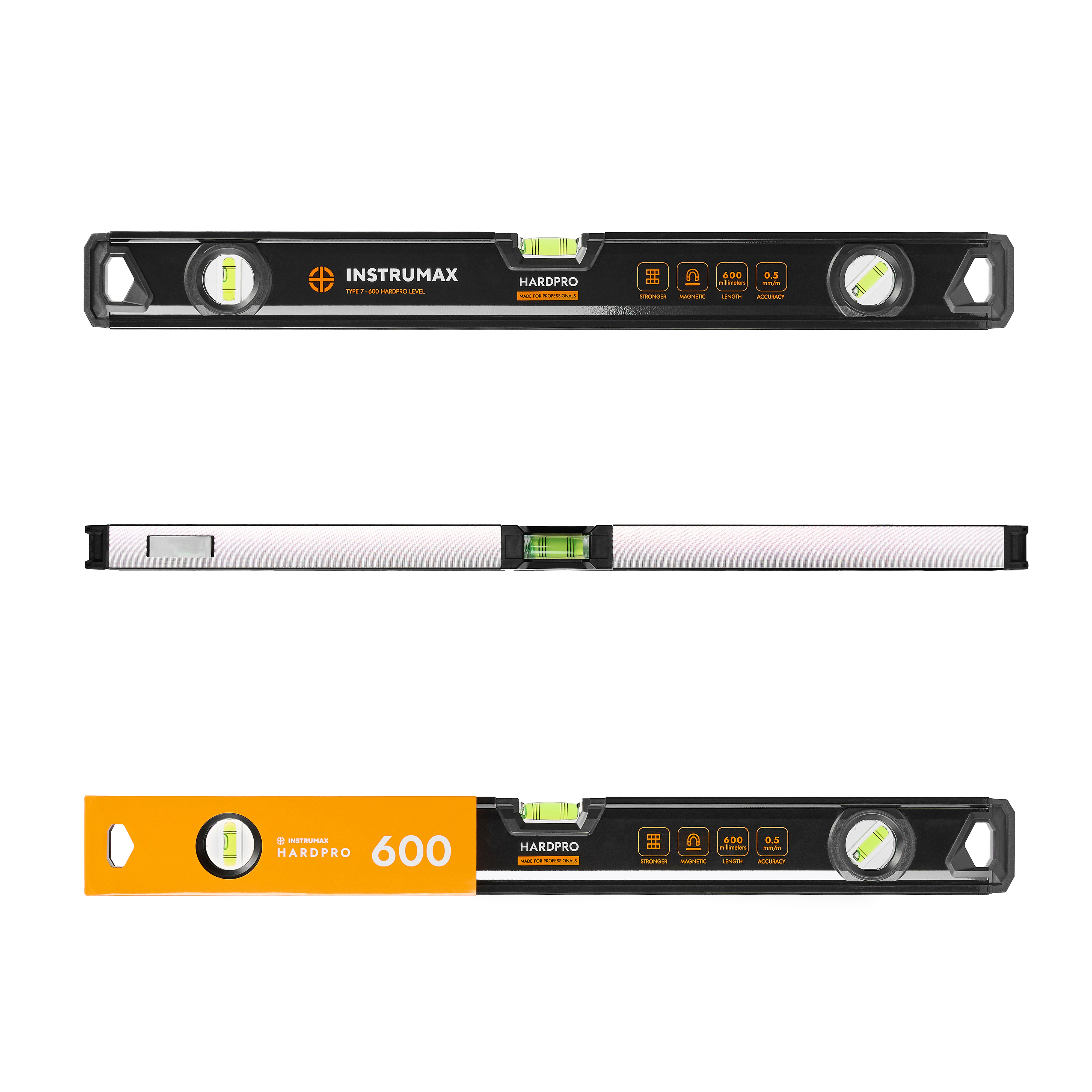 Магнитный, прочный уровень HARDPRO 600 разработан для интенсивной эксплуатации на стройплощадке и рассчитан на повышенные нагрузки. В его основе — мощный алюминиевый профиль брусковой формы: шириной 29мм, высотой 63 мм. Профиль имеет специальную, сложную форму с ребрами жесткости. Это обеспечивает высокую прочность и устойчивость к деформациям. Измерительные поверхности уровня проходят высокоточную фрезеровку.