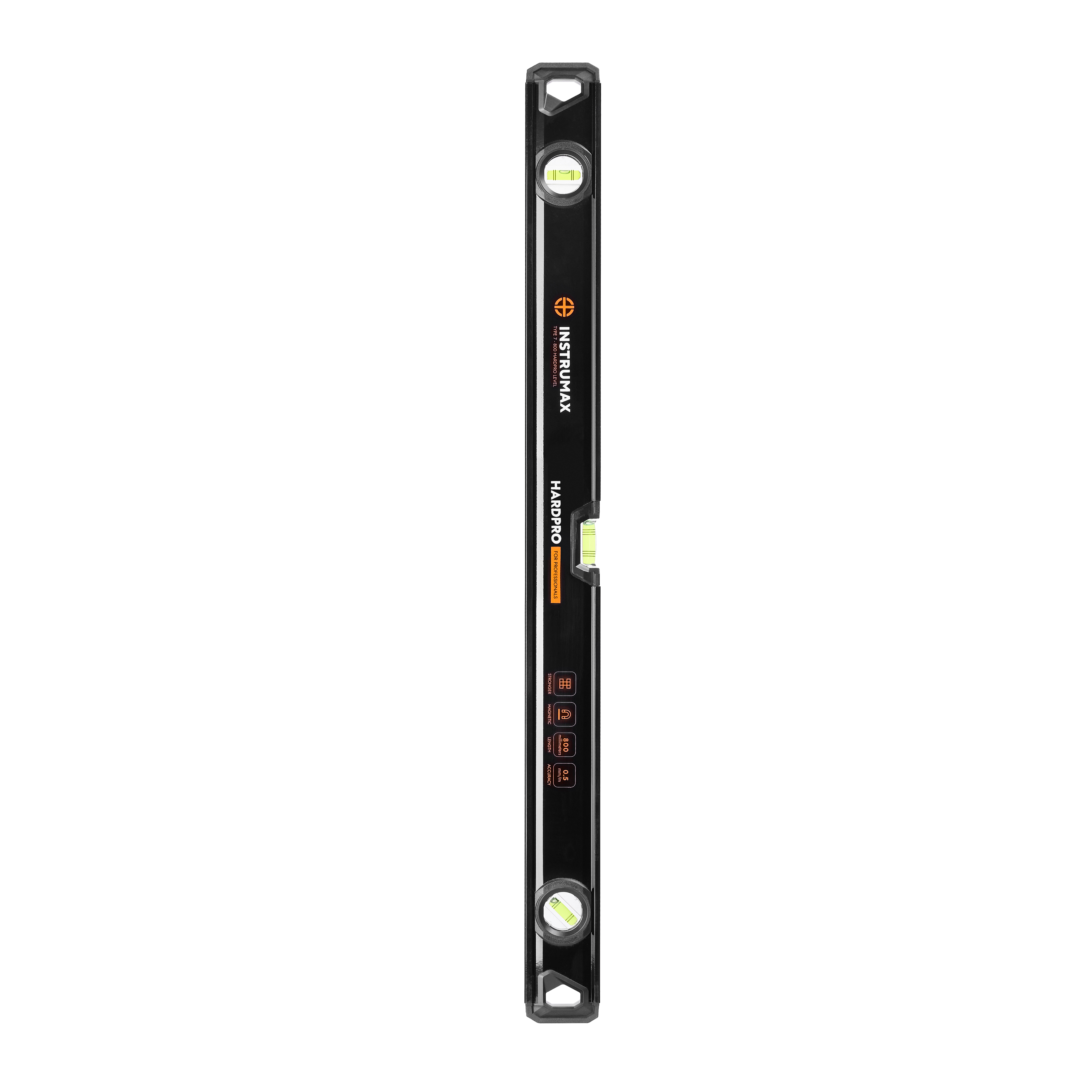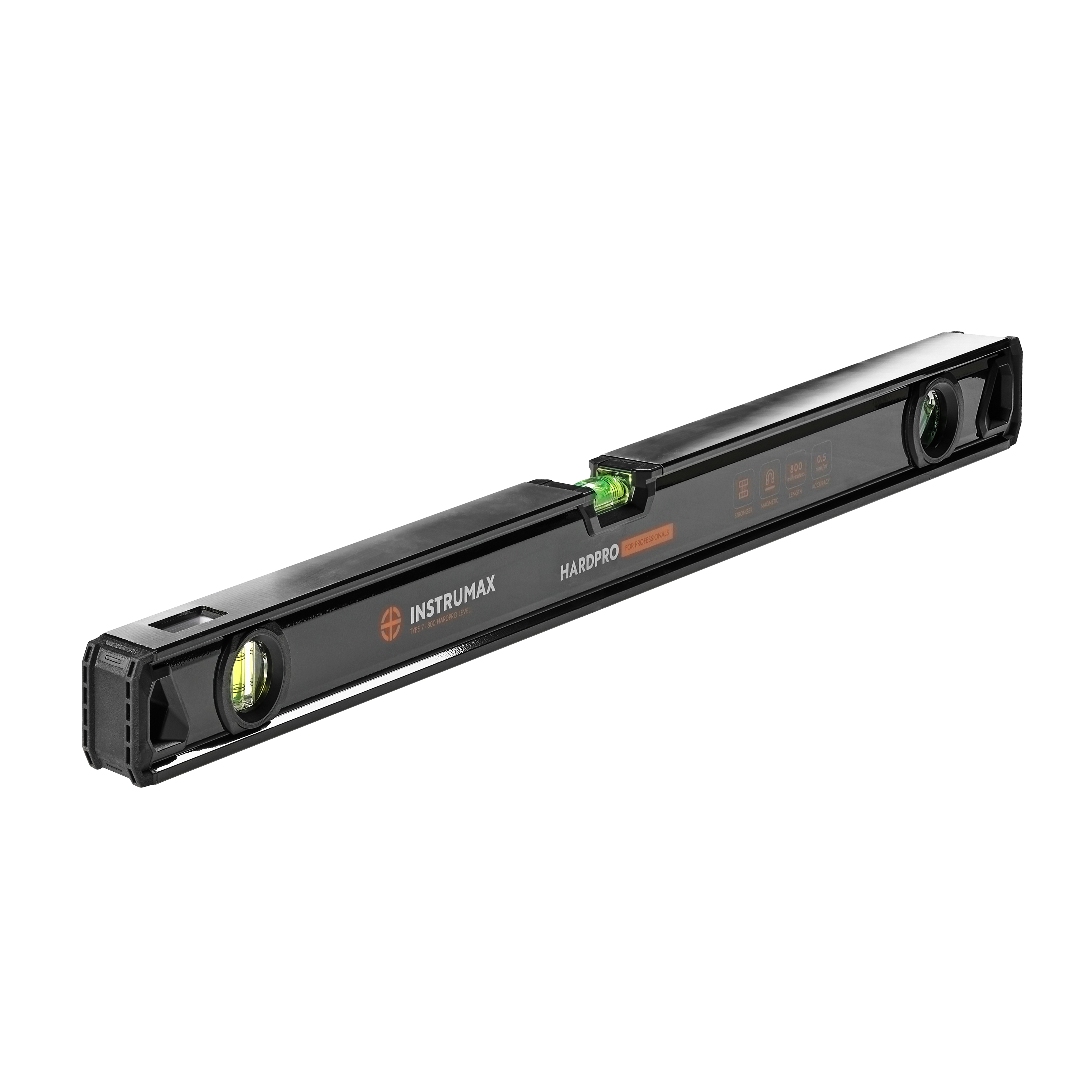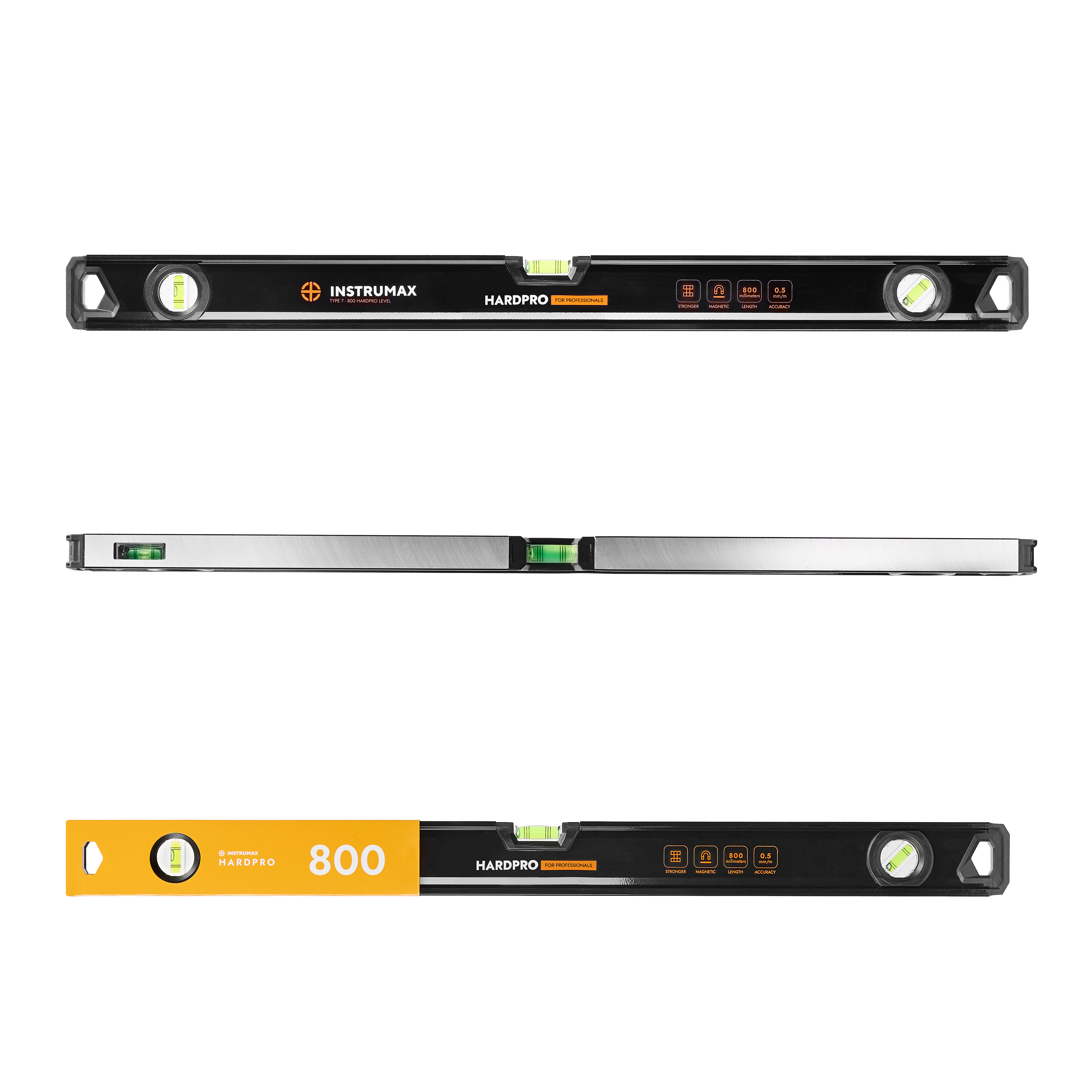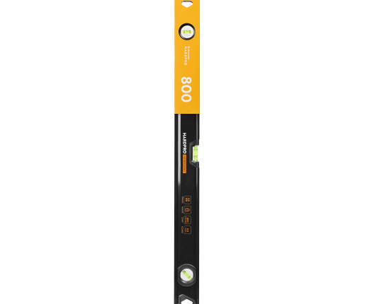 Магнитный, прочный уровень HARDPRO 800 разработан для интенсивной эксплуатации на стройплощадке и рассчитан на повышенные нагрузки. В его основе — мощный алюминиевый профиль брусковой формы: шириной 29мм, высотой 63 мм. Профиль имеет специальную, сложную форму с ребрами жесткости. Это обеспечивает высокую прочность и устойчивость к деформациям. Измерительные поверхности уровня проходят высокоточную фрезеровку.