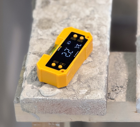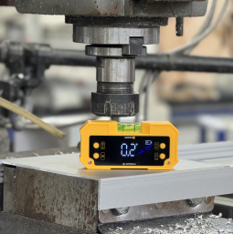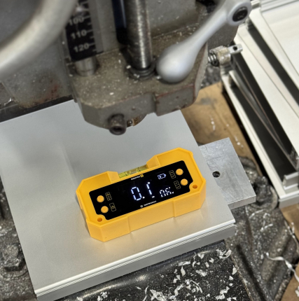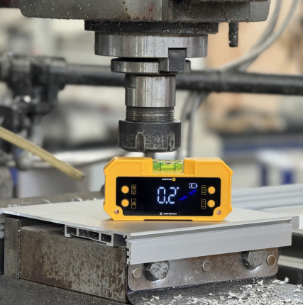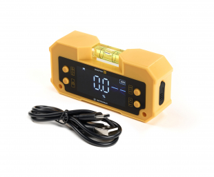 Корпус прибора выполнен из лёгкого и прочного пластика. Кнопки удобны для работы как голыми руками, так и в любых перчатках. Расширяя возможности обычных электронных уровней у данной модели три рабочие поверхности, две из которых оснащены магнитами, что позволяет легко крепить и определять уклон стальных конструкций. Благодаря малому весу и размерам он не займет много места. Результаты отображается на дисплее по выбору в градусах, процентах или мм/м. Дисплей оснащен подсветкой для работ в затемненных местах.
